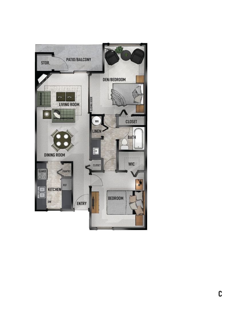 What a fun and unique floor plan to call your home! Technically a 1 bedroom, but can be used as a 2 bedroom home. There is a full sized closet and wall-sized window, as well as a cable outlet in the Den, which ensures freedom and versatility to use the space any way you choose to. The Bathroom is easily accessible from either the Den or the Master Bedroom and with the sink/vanity outside the tub/shower area everyone in the household is able to be prepared and start their day on time. The 6 foot window in the galley Kitchen allows natural light to flow through, which makes your cooking area an enjoyable work center. Enjoy your meal by the Fireplace and settle in for a warm, inviting night in your own space. Feel free to step outside onto your back Patio, through your sliding glass door and breathe in the great air that the lush wooded setting creates for anyone residing at Northgreen Apartments. Walk around the property and enjoy the peaceful setting that the Oakway Golf Course bordering our property provides, even taking in a game of golf if you have the time.