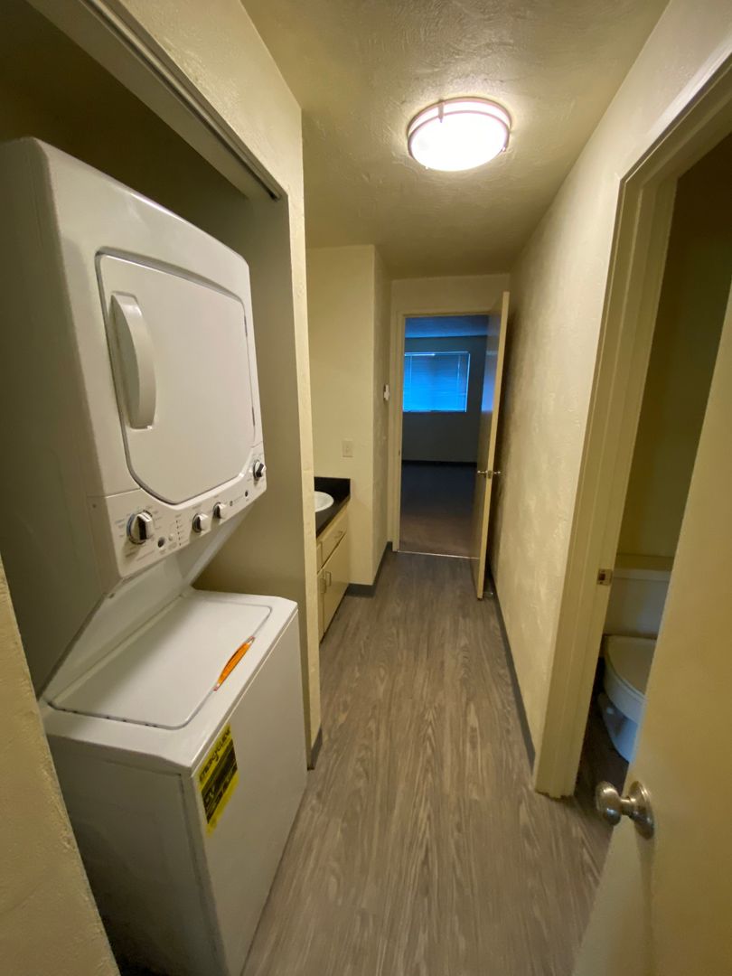 This second-floor apartment offers a unique layout that is officially a one bedroom, yet with its spacious den, it can easily function like a two bedroom. The den includes a full-size closet, a wall-sized window, and a cable outlet, giving you the flexibility to use the space as a guest room, office, or anything you’d like.