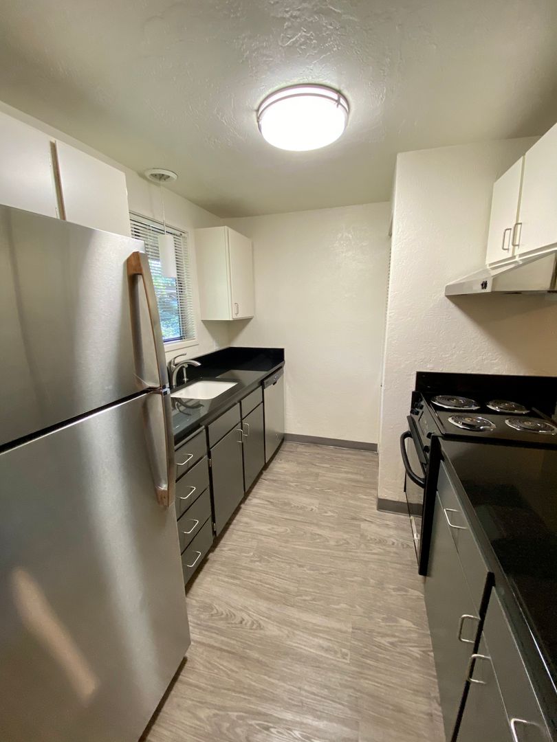 A beautiful community of unique special apartment homes nestled in trees along the first fairway of the Oakway Golf Course, with each home designed to provide the best in apartment living. Eight steps down to this 1150 square foot updated 2 bedroom 2 bath flat, has all kinds of space and storage and is located on the golf course. You can enjoy the open-concept living and dining area, with the pass-thru opening into the kitchen and new appliances. You will find your 2 bedrooms with tons of storage, the washer and dryer, full bath and even more floor-to-ceiling storage in the hall.
